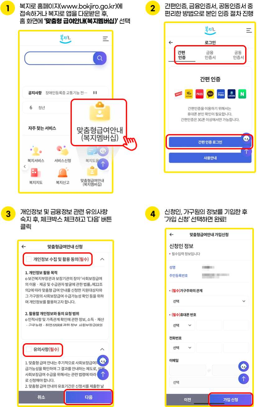 ◆ 복지 멤버십(맞춤형 급여 안내) 신청 방법