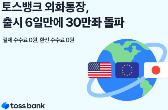 5. 토스뱅크 외화통장 30 만좌 돌파, 2초에 1명씩 가입(평생 무료 환전환율 100% 우대)