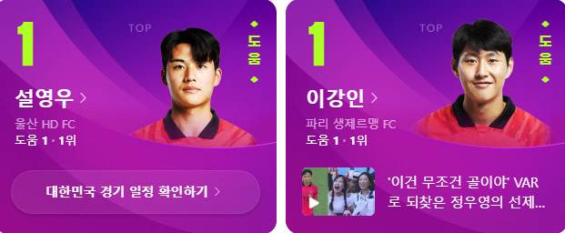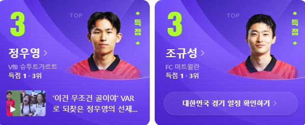 ▷ 좌우 날개 : 정우영(슈투트가르트)과 이강인(파리생제르맹)을 배치