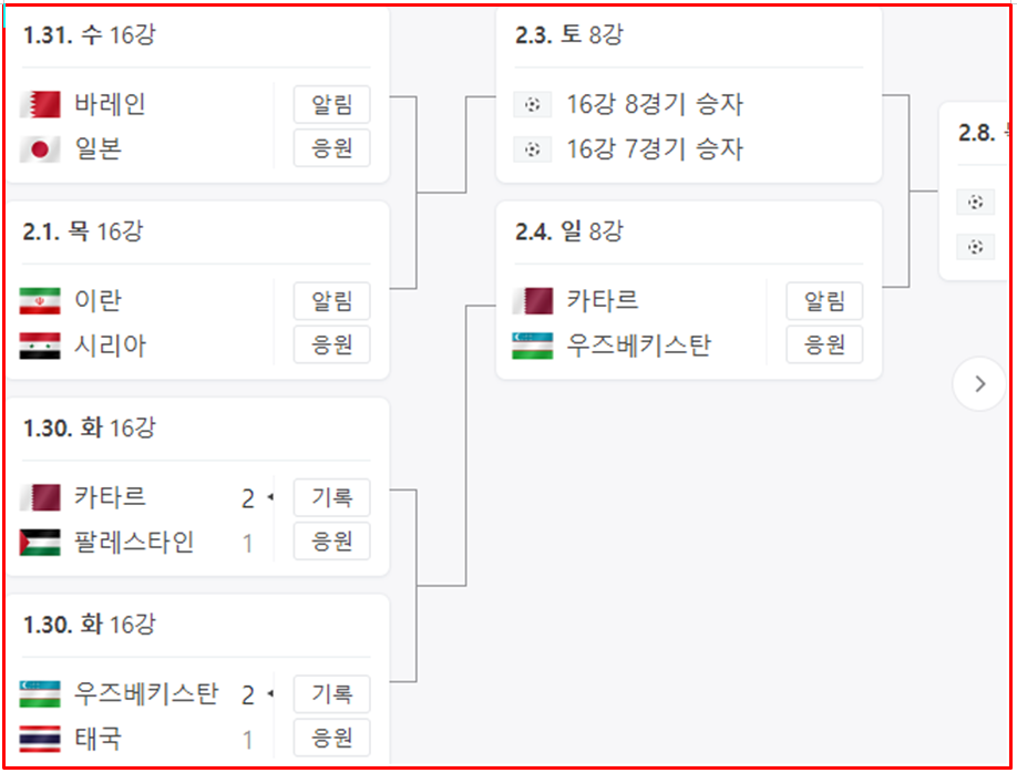 ◆ 카타르 아시안컵 16강전 경기 대진표