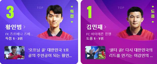 ◆ 대한민국(아시안컵 대한민국 공격포인트 득점, 도움 랭킹)