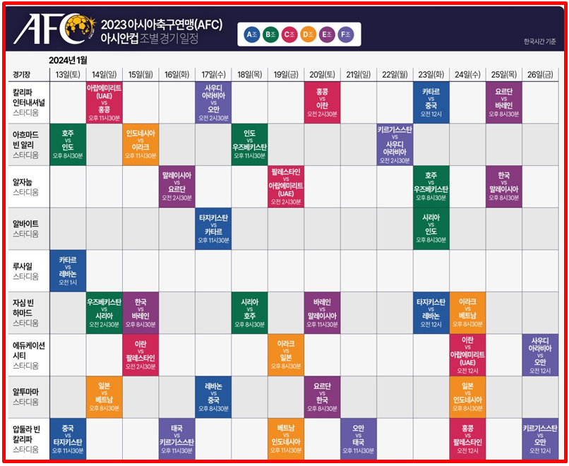 2023년 AFC 카타르 아시안컵 축구 경기 (0) | 2024.01.17 |