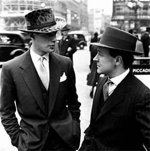 외투로는 부드러운 셔츠와 더블로 여미는 박스형태의 오버코트가 유행하였고 레인코트가 처음 등장하였다. 바지는 커프스가 있는 좁은 바지를 발목뼈 위로 짧게 입어 양말과 구두가 드러나는데, 다이아몬드 무늬가 든 아길 양말에 구두끈이 있고, 윗부분은 색이 다른 가죽으로 씌운 옥스퍼드(Oxford)나 발등 부분에 술이 달린 로퍼(loafer)를 신었다.