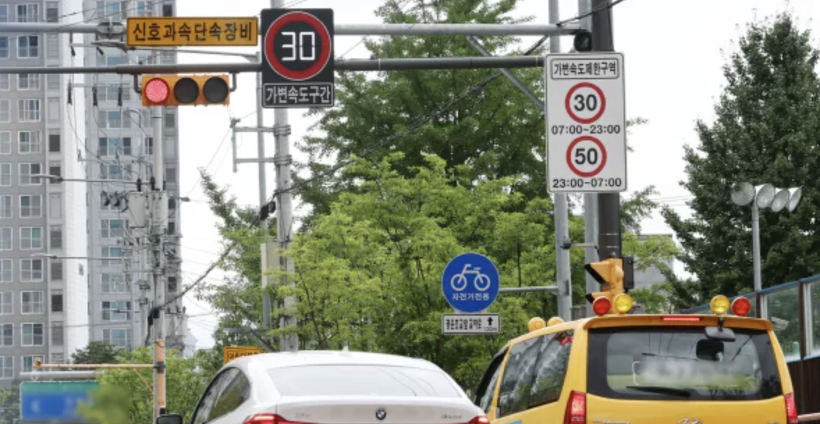 어린이 보행자가 적은 심야 시간대인 밤 9시부터 다음날 오전 7시까지는, 40~50km까지 늘려 원활한 차량 흐름을 유도했었