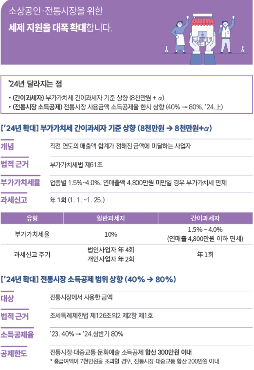 - 소상공인 · 전통시장을 위해, 대폭 확대 부가가치세 간이과세자 기준이 8천만 원 이상으로 상향