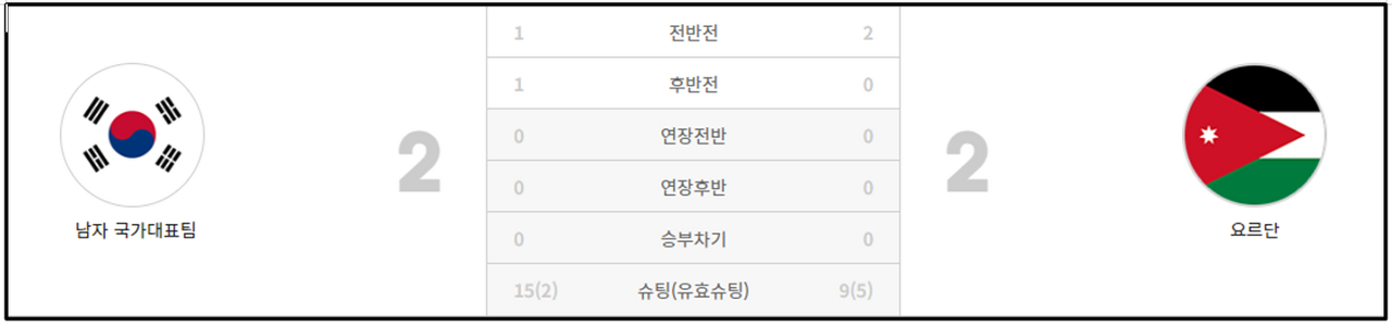 ▷ 경기결과 : 한국, 요르단과 2-2 무