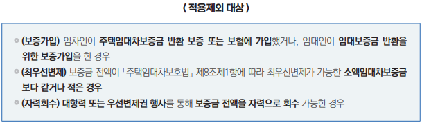 위의 세 가지 유형 중 하나에 해당하더라도, 아래의 어느 하나에 해당하면 특별법상 지원을 적용받을 수 없습니다.(특별법 적용 없이도, 임대차 보증금 회수 가능 때문)