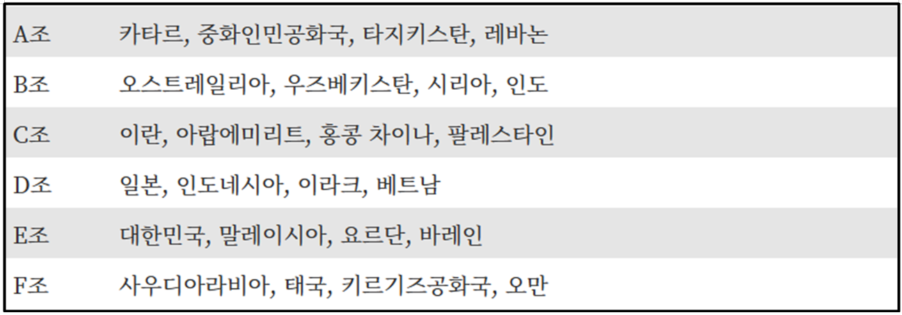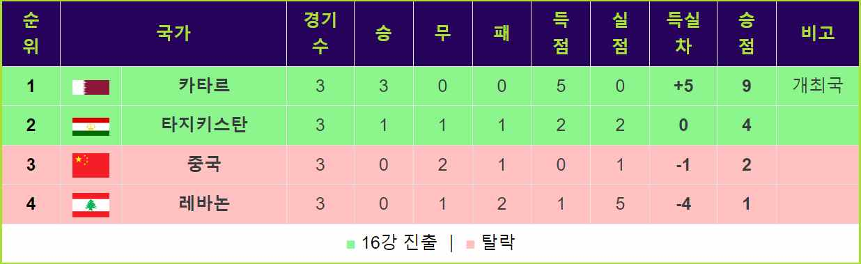 * 이 가운데 카타르와 이라크는 각각 조 1위로 확정