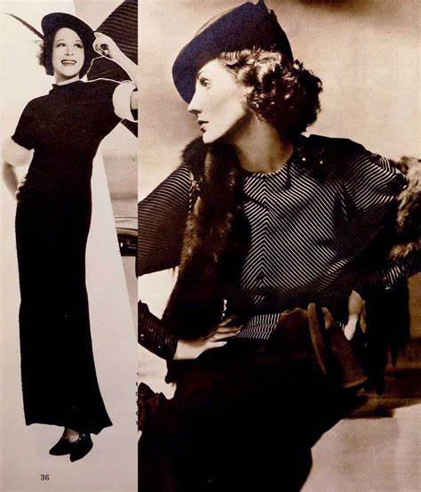 1930년대의 여성복은 부드러우면서도 볼륨 있는 실루엣에, 작은 모자와 굽이 편평한 운동화 모양의 구두가 유행했습니다.