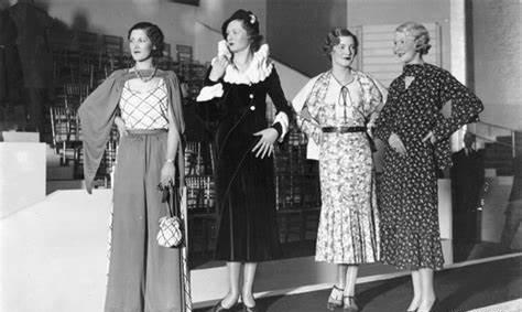 세계적인 경제 대 공황으로 인하여 여성들의 의복이 주로 하우스 드레스로 돌아가게 되었습니다. 1차 대전 이후 남성들의 사회 복귀를 위한, 국가적 차원에서 의도적으로 만들어진 유행이라고 합니다.
