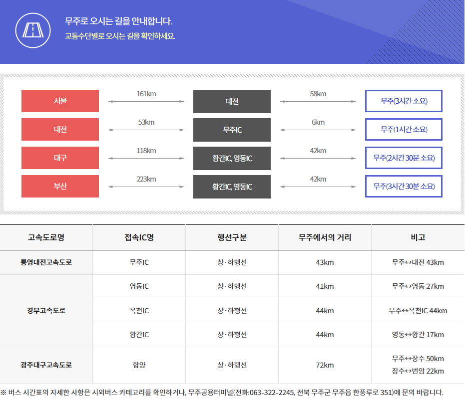 * 전북 특별자치도 무주군 무주읍 한풍루로 351(무주 공용 버스터미널)